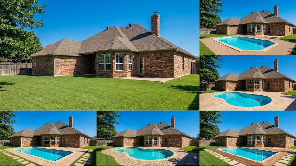 You will receive 50 HD photos of your backyard with 5+ different inground pool styles/shapes.